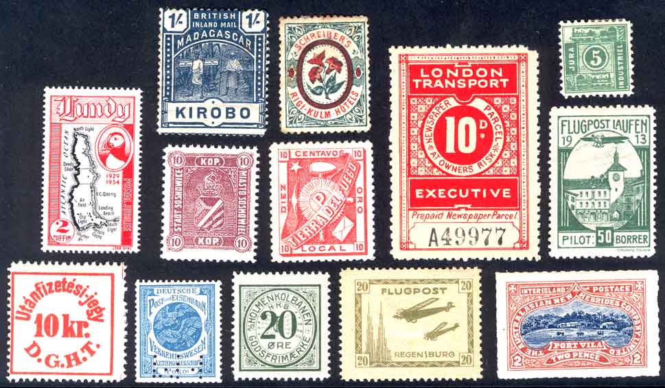 as well as exhibition stamps (commercial as well as philatelic), patriotic and political stamps, military propaganda