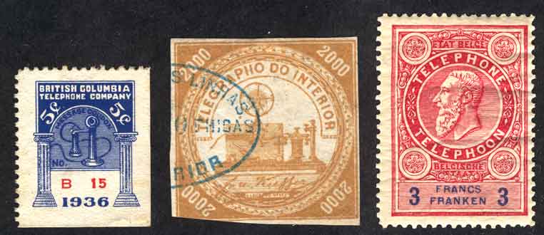 TELEGRAPH & TELEPHONE STAMPS: Stamps used to indicate that a fee has been paid for transmission or transport